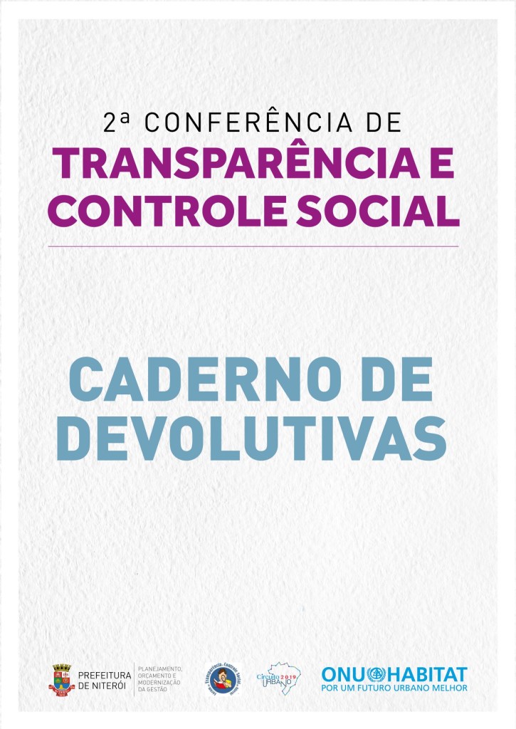Foi lançado o Caderno de Devolutivas da 2ª Conferência Municipal de Transparência e Controle Social (2ª CONSOCIAL) realizada em 2019 pela Prefeitura de Niterói-RJ, em parceria com o Conselho Municipal de Transparência e Controle Social, com o Fórum de Transparência e Controle Social de Niterói e com o apoio ONU Habitat e do Instituto de Governo Aberto (IGA).