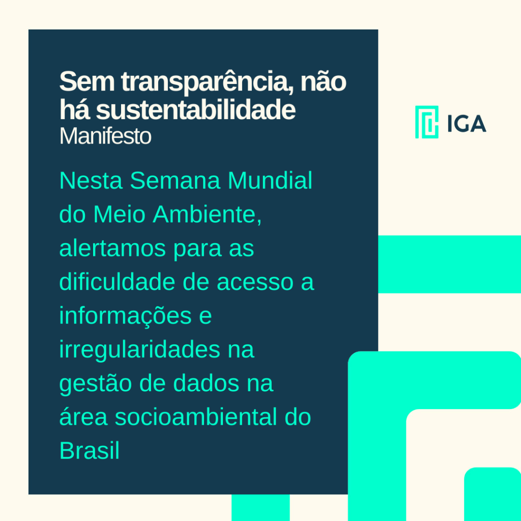 Nesta Semana Mundial do Meio Ambiente, as organizações signatárias deste manifesto alertam para a grave conjuntura de obstáculos ao acesso a informações e irregularidades na gestão de dados na área socioambiental do Brasil e exigem providências dos órgãos de controle externo e interno para solucioná-los.